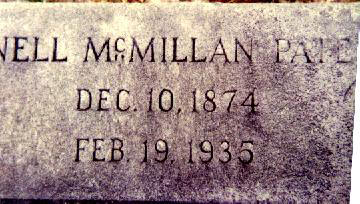 2 Feb 1941 "Bubber" Eleanor Virginia McMillan Pate 10 Dec 1874 19 Feb 1935 "Nell" Andrew Mejack 28 Dec 1908 4 Jan 1944 WWII Alice V. Pate Osborne Mejack 3 Dec 1902 4 Jan 1996 Son McMillan 1 Apr 1876 1 Apr 1876 Paul Eugene McMillan 9 Dec 1891 3 Aug 1892 Jasper