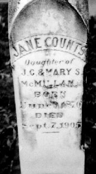 4 Jul 1960 Floyd Monroe Varn 2 Jul 1921 30 Jan 1933 Emily McMillan Eaves Bishop 19 May1830 4 Mar 1900 Walter S. Eaves 1854 1911 Capt. James Christian McMillan 26 Oct 1831 26 Jan 1907 "Chris" C.S.A. Mary Susanna Folk McMillan 13 Jul 1832 22 Oct 1917 Lawrence Pinckney McMillan (marker only) Urbanna McMillan Westbury 7 Aug 1881 7 Apr 1912 Carolina Amanda McMillan 11 Mar 1859 29 Dec 1866 "Sudie" McMillan 6 Sep 1867 3 Jan 1961 Susan Hazeltine Janie Counts McMillan 9 Jun 1870 7 Sep 1905 James Edwin McMillan 22 Mar 1875 30 May 1935 "Eddie" Robert Downs Wright 1887 1948 Gussie Jennings Wright 1886 1981 Devra Marlane Jennings 5 Mar 1951 8 Mar 1951 Cornelia S. Jennings 1855 1910 Julian A. Jennings 1857 1927 I Pinckney Jennings 30 Aug 1862 4 Oct 1955 James Alex Jennings 3 Feb 1893 9 Mar 1972 Alma Kirkland Jennings
