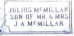 Hope Sophia Delilah Faust McMillan 23 Oct 1809 8 Apr 1894 "So-Fi-Yah" Dr. Francis Marion McMillan 1837 20 Jan 1868 "Barney" C.S.A. Mary Adaline McMillan 22 Jun 1838 27 Jun 1856 Sophia Letitia Teresa McMillan 29 Sep 1849 23 Jan 1904 "Tish" Julius Augustus McMillan, Sr. 13 Oct 1852 2 Jul 1929 Hattie Florine Rice McMillan 21 Mar 1865 15 Jun 1947 Julius Augustus McMillan, Jr. 1895 No death date Roy M. McMillan 7 Feb 1903 19 Nov 1973 Sgt. Henry Zachary McMillan 29 Mar 1847 15 Dec 1923 "Big Z" C.S.A. F Virginia Westbury McMillan 16 Apr 1853 15 Oct 1911 "Ginnie" Henry