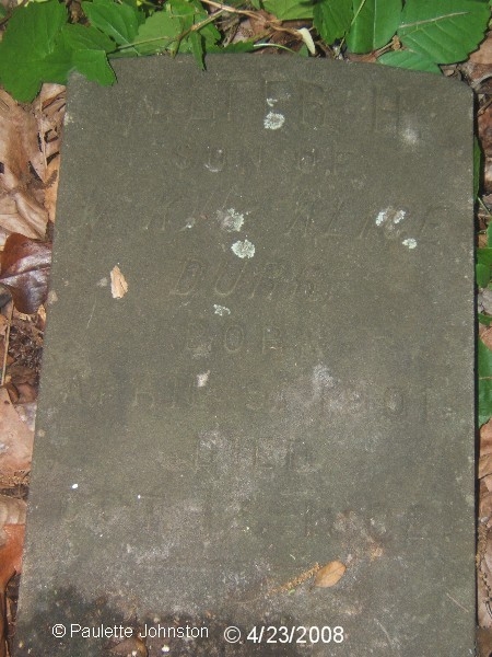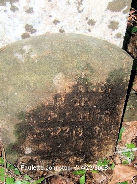 Location: A short distance north of S-18-48 at the end of a field west of the dairy owned by Richard W. Durr.Michael Durr was enumerated in the 1790 Census in St. Georges Parish, Dorchester County, Charleston District, as Michael Derr (page 33). He had five daughters and four sons, one of which was Jacob Durr who had a son named John Durr who is buried along with his wife in a walled-in enclosure at the Durr Family Cemetery. The walled-in enclosure surrounding those graves was made from hand made brick which was plastered with mortar. This cemetery was established sometime after the end of the Civil War, and John Durr was buried there in 1878. We have recently been told that some Wimberlys or their descendents were buried there but no markers remain. Ella Belle Durr Kizer and Kerry Durr